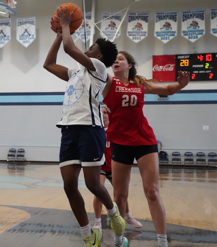 showed the versatility at the shootout. Waters has definitely added muscle and has increased her physical play. She attacks the rim and can finish at the rim or hit you with the running floater. She connected on some three pointers that showcased her range and multi area scoring ability. Her three point efficiency is at its highest and makes a Waters a threat every time she touches the ball. Defensively, she blocked multiple shots and some in spectacular fashion. One play comes to mind. One of the most athletic players in building gets downhill to the rim appearing to have a step pass Waters. By the time the ball is released it is rejected into the “deep Waters”