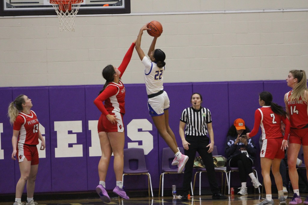 Rankin played fantastic against Peters Township, scoring 10 pts on 4-6 shooting, 2-2 from the line, and 11 rebounds. But her defense- how she can jump and protect the paint, is what makes her so difficult for opponents! (Below, shooting)