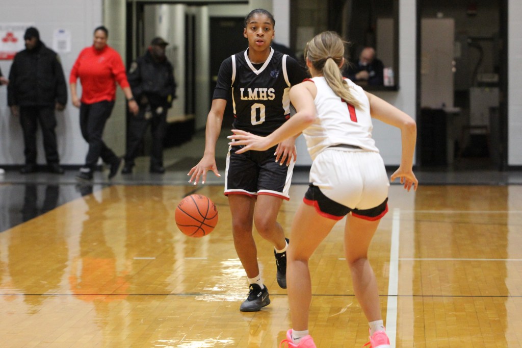 Love Towns’ court awareness! Pretty floaters to the rim, under control! Terrific moves going baseline- she angles her body in a way that protects the ball! She is so smooth going to the bucket! Doesn’t matter the defensive pressure or if the best defender is guarding her- this young lady is calm, cool, and collected. She is a next level player and is going to have a successful college future! (Below with ball, Featured Photo)
