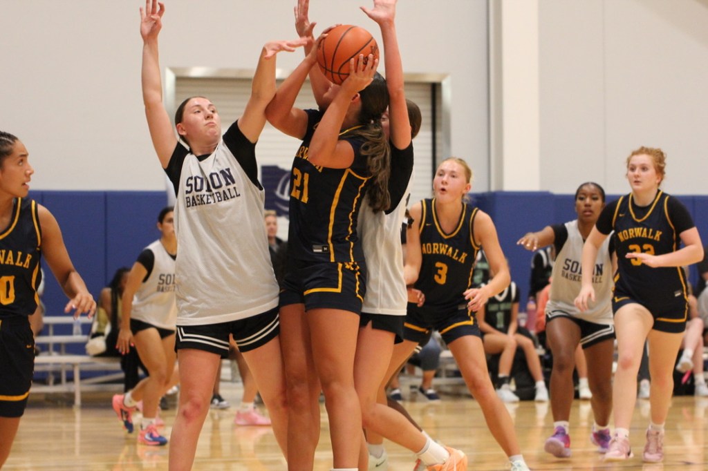 It doesn’t matter who Leber is competing against- she shows up and provides boards, buckets, and owns the paint defensively! Doesn’t matter if she’s double teamed- she’ll muscle her way through and score with contact! (Below with ball, making And-1)