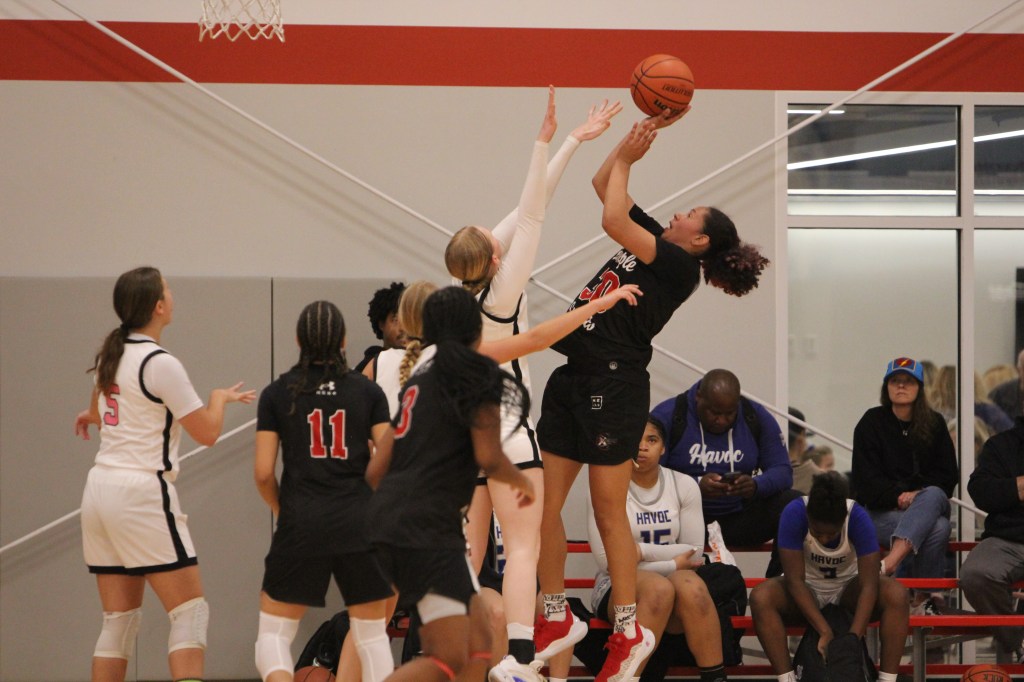 Harrison making a 3 and fouled! Nothing messes with her shooting form! Finds the open spots on the court and confident to take them! She’s an explosive guard with muscle, can deliver passes in a flash, and she’s a team player! Next level baller! (Below, shooting)