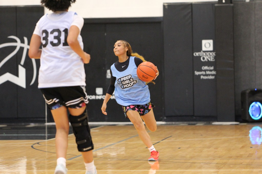 Knight’s battery doesn’t wear down- her motor is a major asset to Naliyah’s overall game! Nice hesitation moves with the ball while on transition. Defensively this young lady is on her toes, anticipating the next pass!