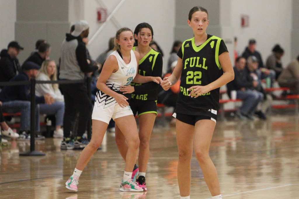 Austin makes things click on both ends of the court! I like her sense of urgency when taking off on transition, and she looks and plays comfortable- not flustered! She attacks the basket, has solid shooting mechanics, and her motor compliments how active she is in all aspects of the game. (Below in white uniform)