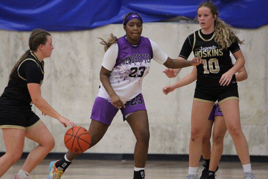 Nice hustle getting down the floor and making the opponents pay for not getting back! I like her D, and how she anticipates the next move to make on both ends of the ball. (Below in black uniform, #10)